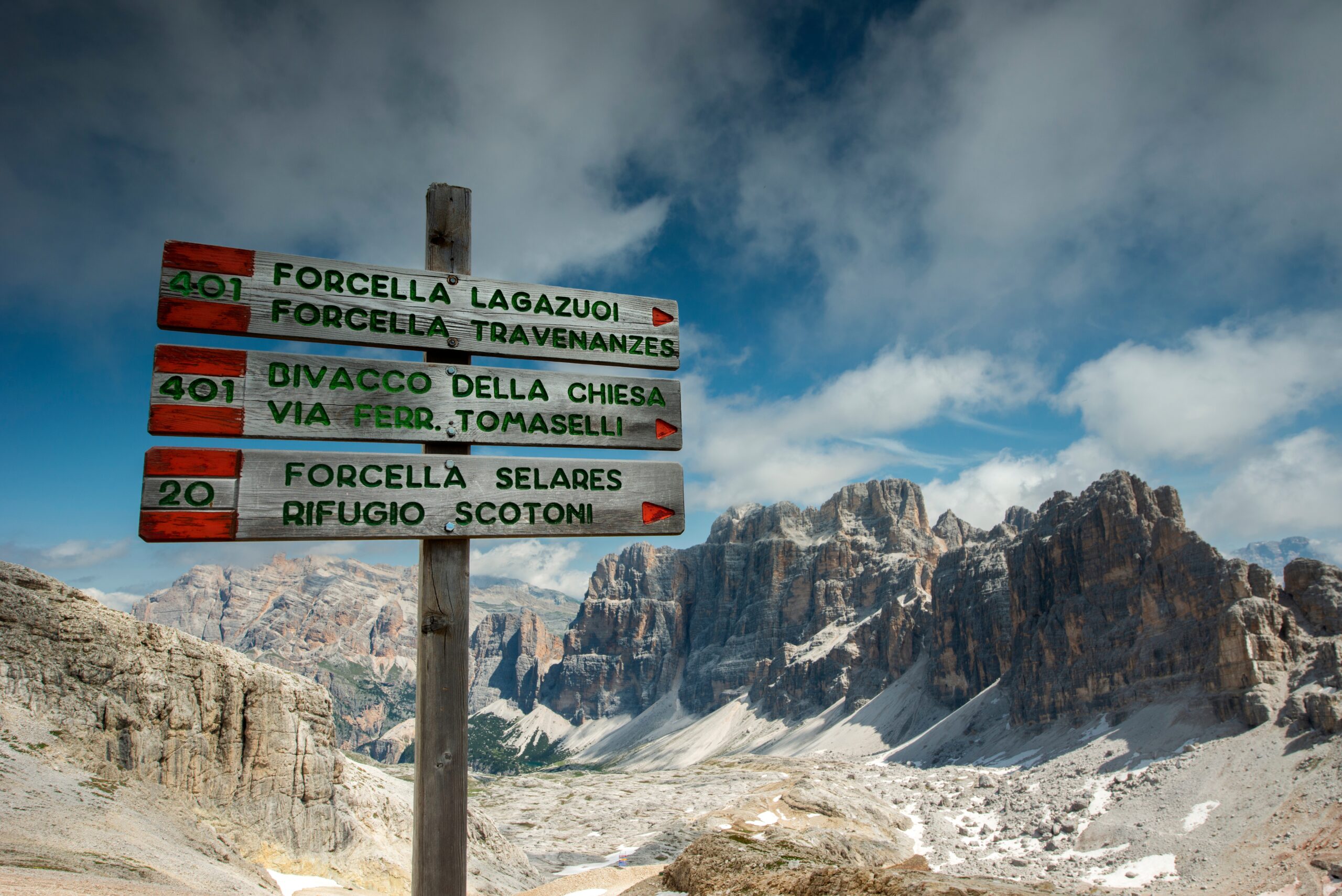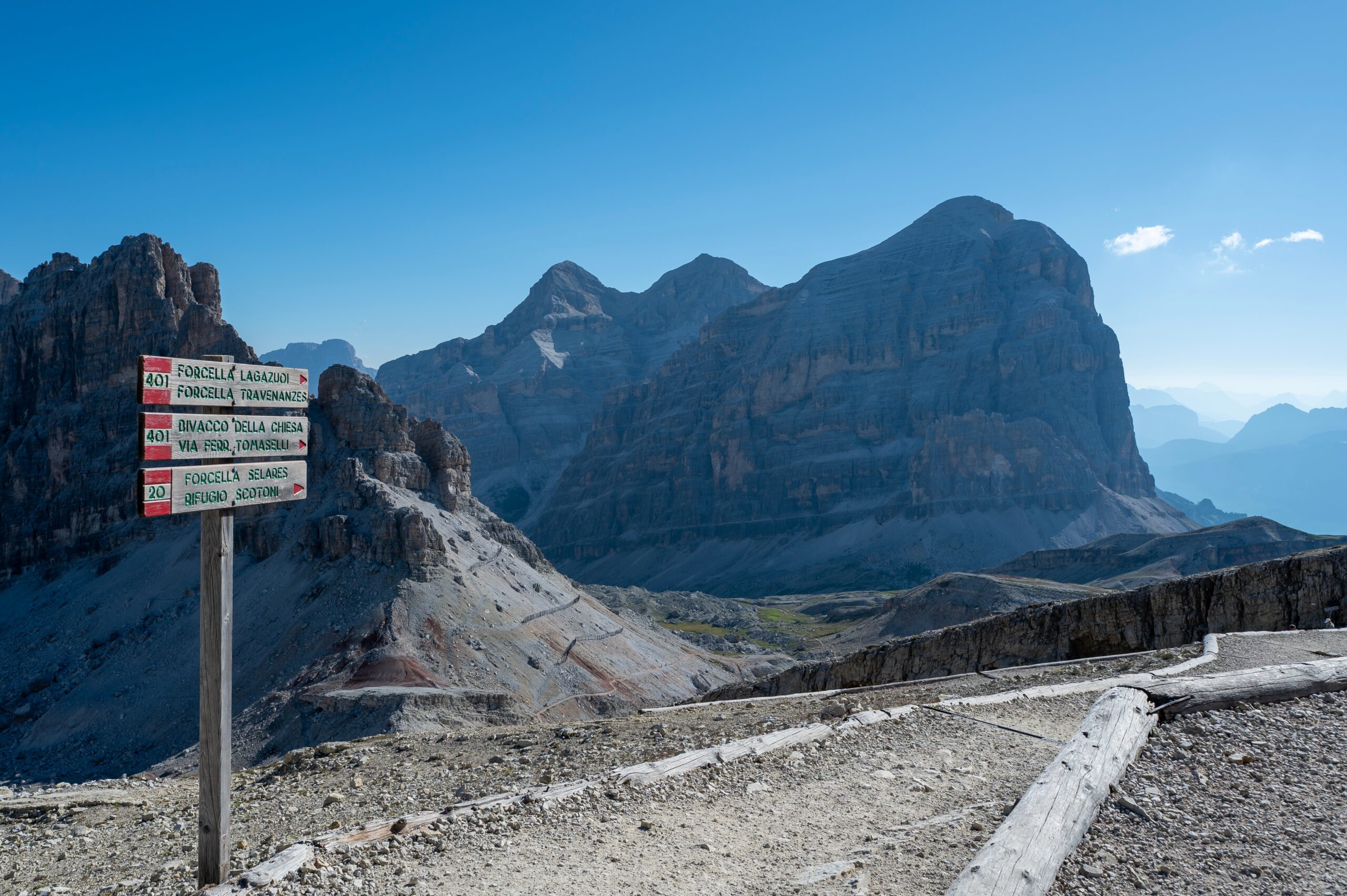 Du startest am Passo Falzarego und folgst dem Sentiero della Pace (402) vorbei an Stellungen und Stollen des 1. Weltkriegs zur Forcella Travenanzes. Über das Karstplateau nordseitig des Kleinen Lagazuoi geht’s zum türkisgrünen Lago di Lagazuoi und steil hinunter zur Rifugio Scotoni. Final führt ein aussichtsreicher Abstieg zur Capanna Alpina – Dolomitenkino inklusive.
